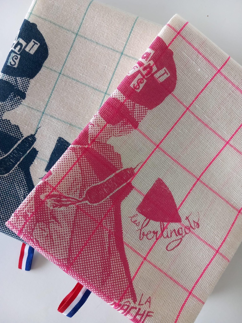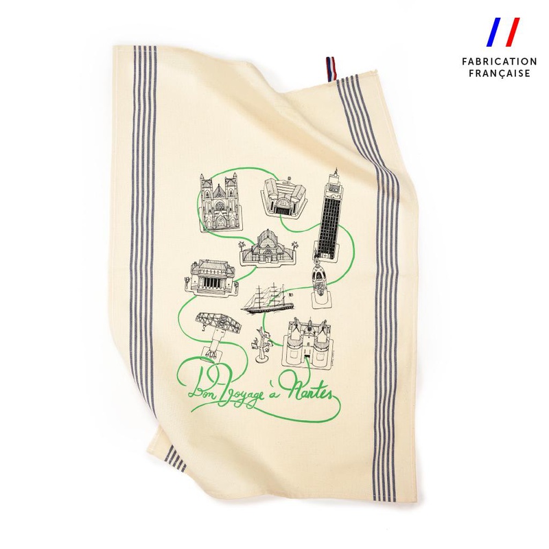Le Voyage à Nantes égaye votre cuisine avec des serviettes de table de couleur écru 100% coton arborant une illustration créée par Appelle Moi Papa, le "Petit écolier" est un emblème d'une célèbre marque de biscuit nantais réinterprété par l'artiste.